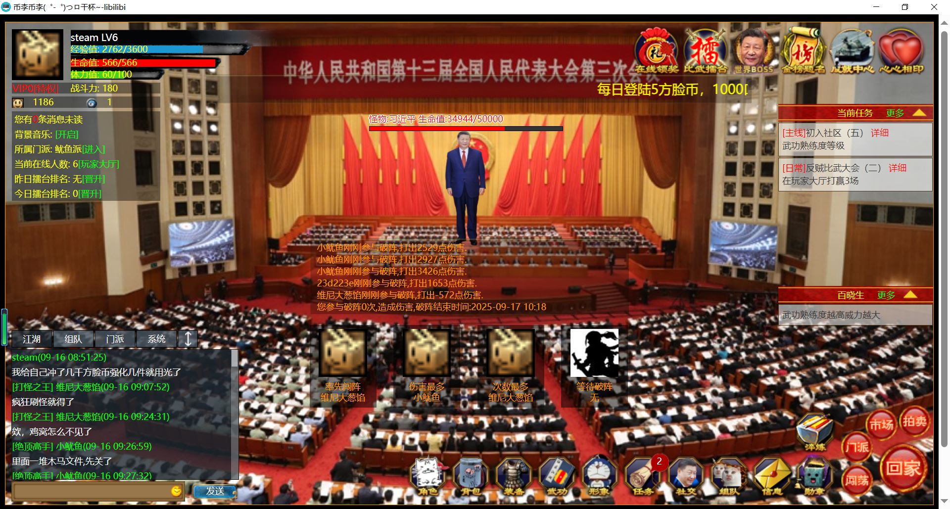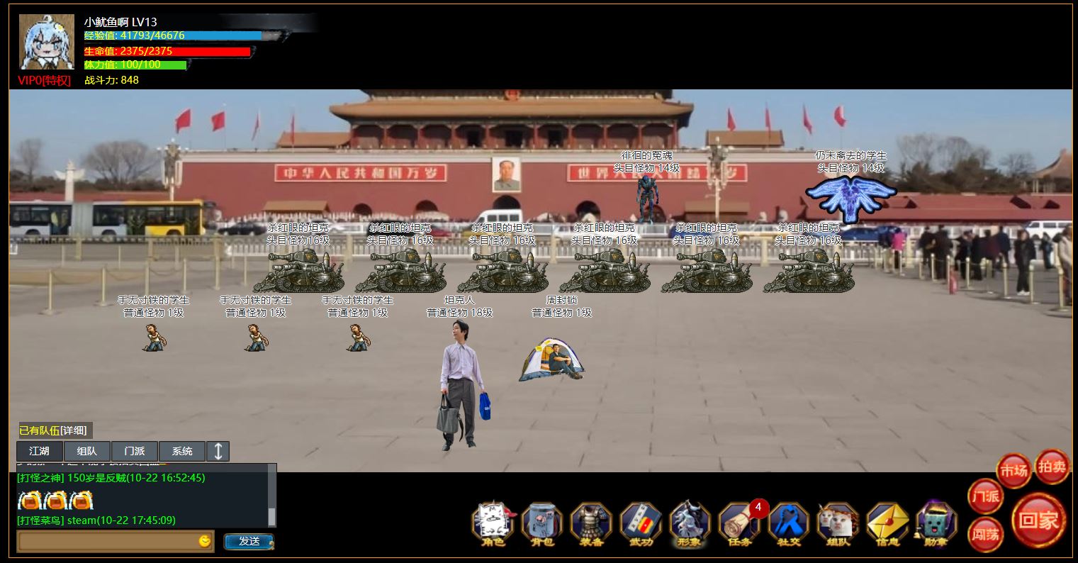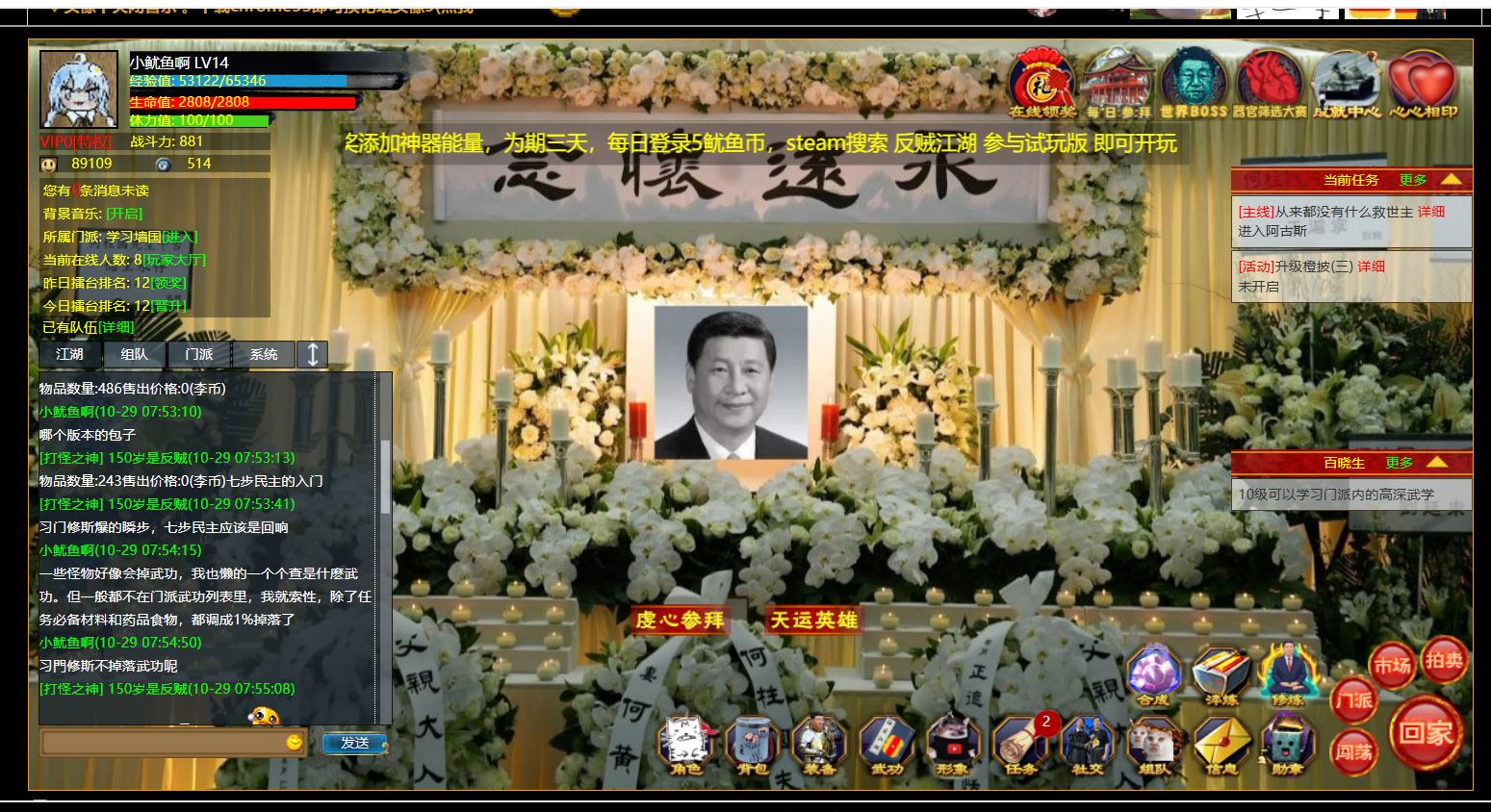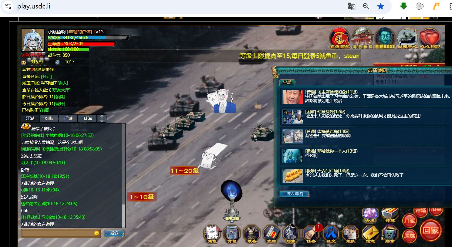 This project is a multiplayer raid game where players must complete missions to become stronger and ultimately defeat Xi Jinping. It was initiated by several of the largest overseas Chinese student organizations opposing communist dictatorship. They were united by their opposition to dictatorship, and among them are Nobel Peace Prize nominees. PS: I just made this game for them.